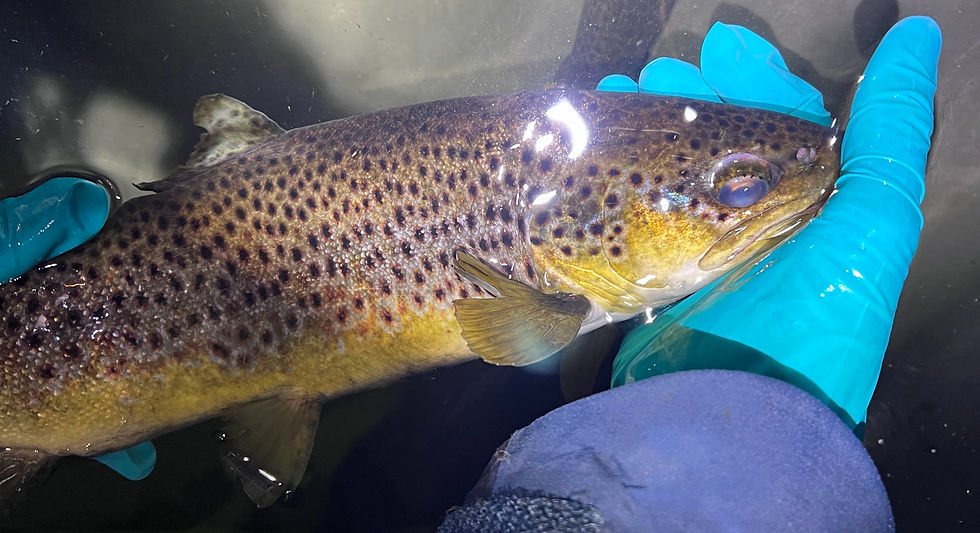 Å fange sjøørret i Store Lungegårdsvannet har aldri vært enkelt. Til tross for mange forsøk med stang og snelle i 2024 og 2025, hadde vi lite hell. I 2024 klarte vi bare å merke én sjøørret, men for 2025 visste vi at vi trengte en annen strategi. Så vi gikk tilbake til en metode som fungerte godt for oss i 2021 – med en liten vri. I år, i stedet for elektrisk fiske, lette vi etter ørret om natten med hodelykter. I de stille timene etter mørkets frembrudd samlet vi dem forsiktig opp med håv. Det er enkelt, stille, skånsomt – og overraskende effektivt.